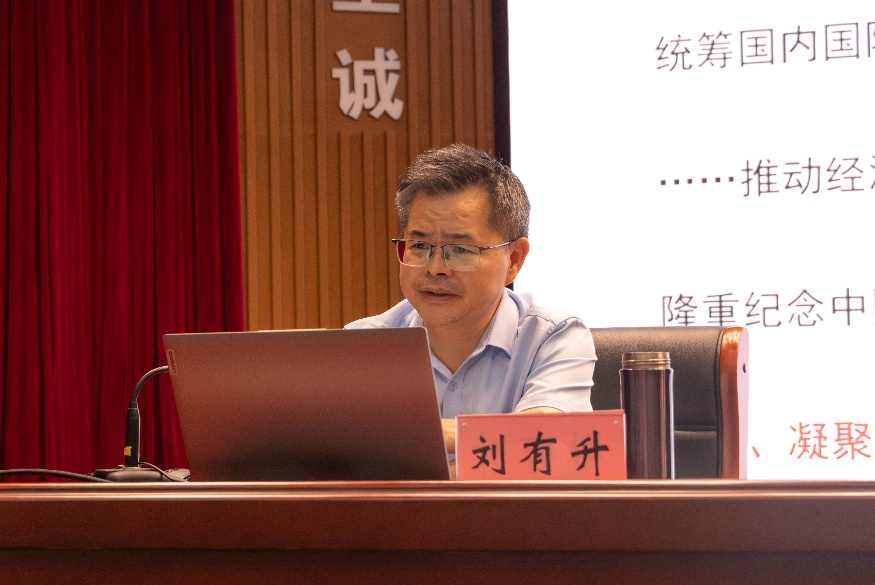 开班仪式后,马克思主义学院副院长刘有升教授以《在接续奋斗中谱写中国式现代化新篇章——学深用好党的二十届四中全会精神》为题作首场专题授课。刘教授结合其深厚的学术造诣和丰富的理论研究经验,从多个维度深入解读了二十届四中全会精神的核心要义与实践要求。报告脉络清晰、内涵丰富,既有理论高度又有实践指导性,为学员们深刻理解和把握全会精神、有效开展支部工作提供了有力指导。
