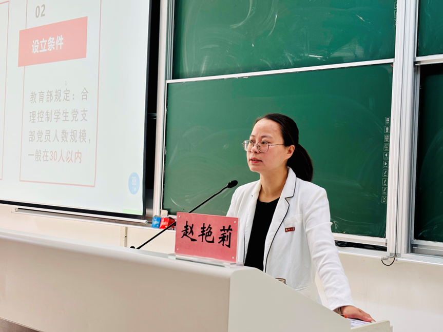 党委组织部组织科干部吴雨桐老师作了题为《高校发展党员工作实务》的专题报告。吴老师紧密结合高校党建工作实际,从发展党员工作的重要意义入手,完整解读了《中国共产党发展党员工作细则》的核心要求与基本原则。报告中,吴老师对党员发展各个关键阶段的流程与规范进行了条分缕析的讲解。她还针对发展党员工作中常见的会议记录、材料填写等实际问题,结合典型案例进行了深入剖析与解答。重点突出、操作性强,有效提升了参训学员对发展党员工作的政策把握能力和实务操作水平,为从源头上保证党员发展质量、规范基层支部组织建设提供了有力支撑。